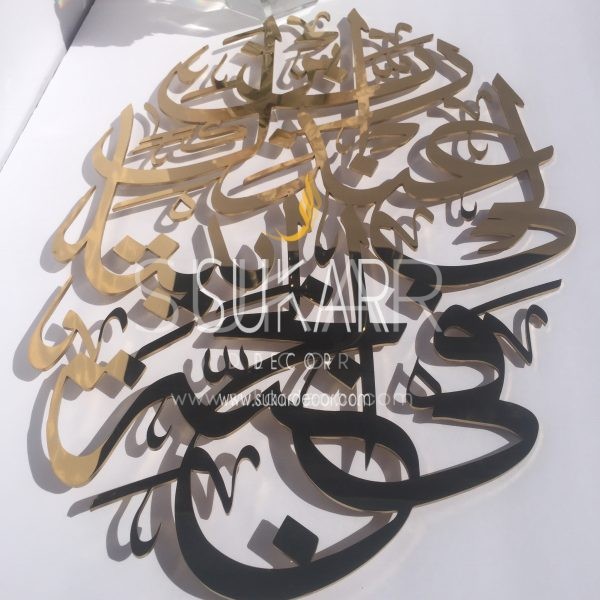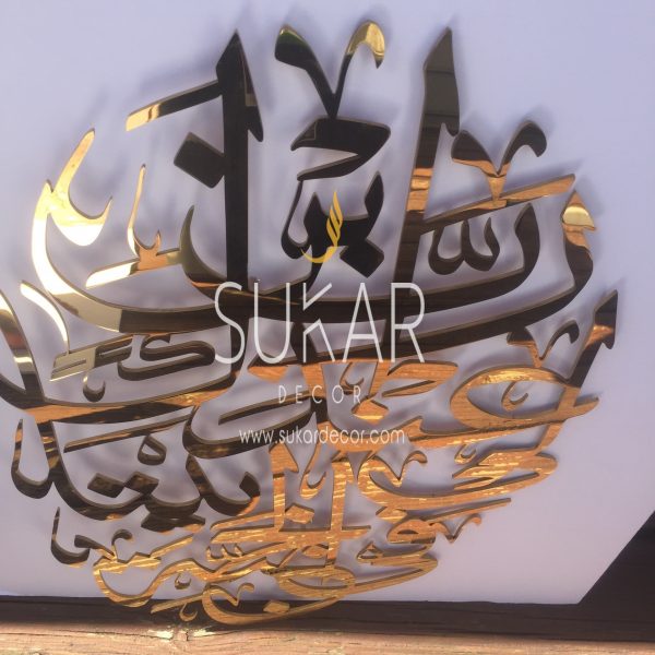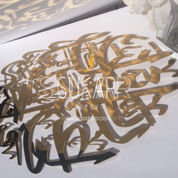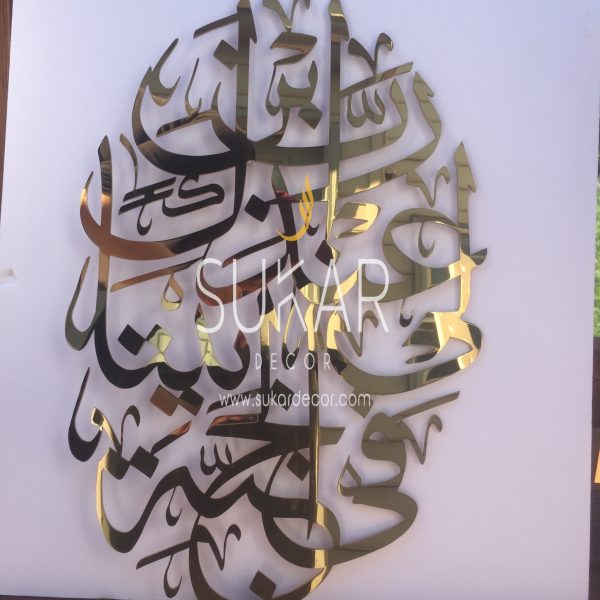 Stainless Steel Plate Design Gold Plated. Modern Arabic Wall Art reads “Rabbi Ibni Li Aa’ndaka Baitan fil Janna”
