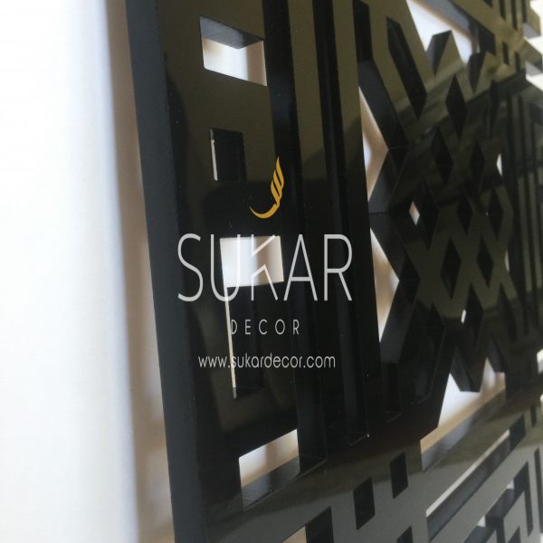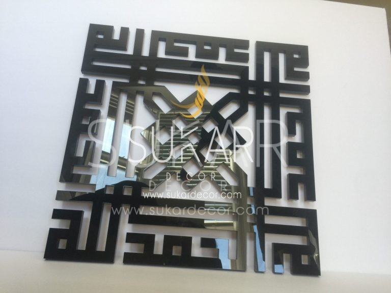 Polished PVC Design. Modern Arabic Kufic Wall Art reads “Alhamdulilah”