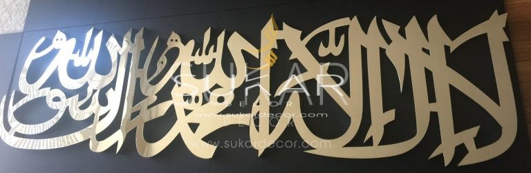 3D Modern Arabic Wall Art reads La ilaha illah Allah Mohamed Rasulallah .